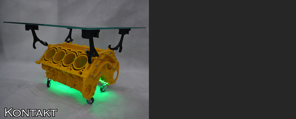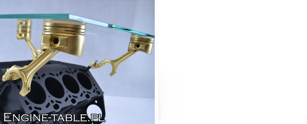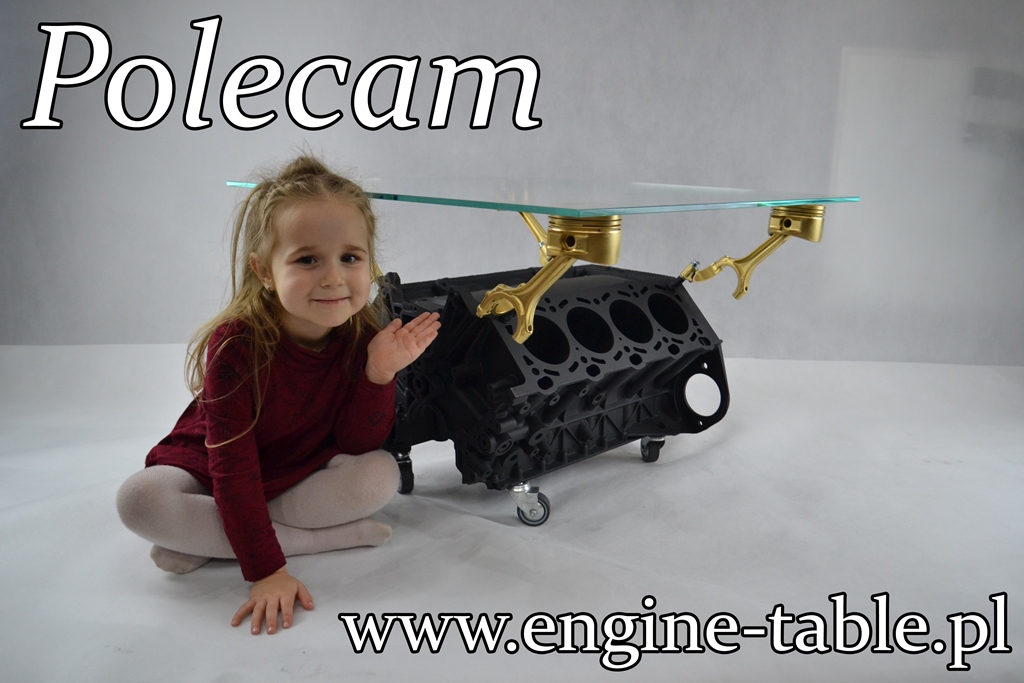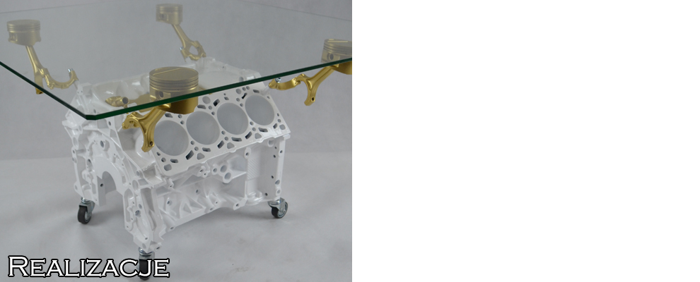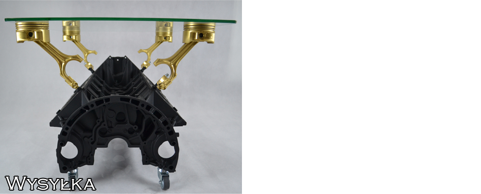 To stolik kawowy wykonany z bloku silnika samochodowego, specjalnie przygotowanego i polakierowanego.